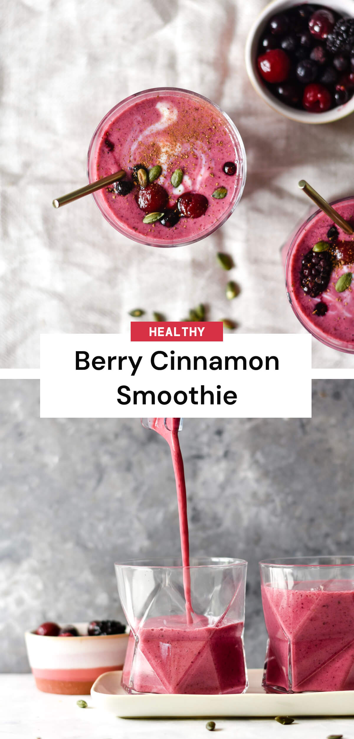 This berry cinnamon smoothie is packed with cosy flavours and seasonal berries, and is the perfect drink for when that smoothie craving hits!