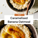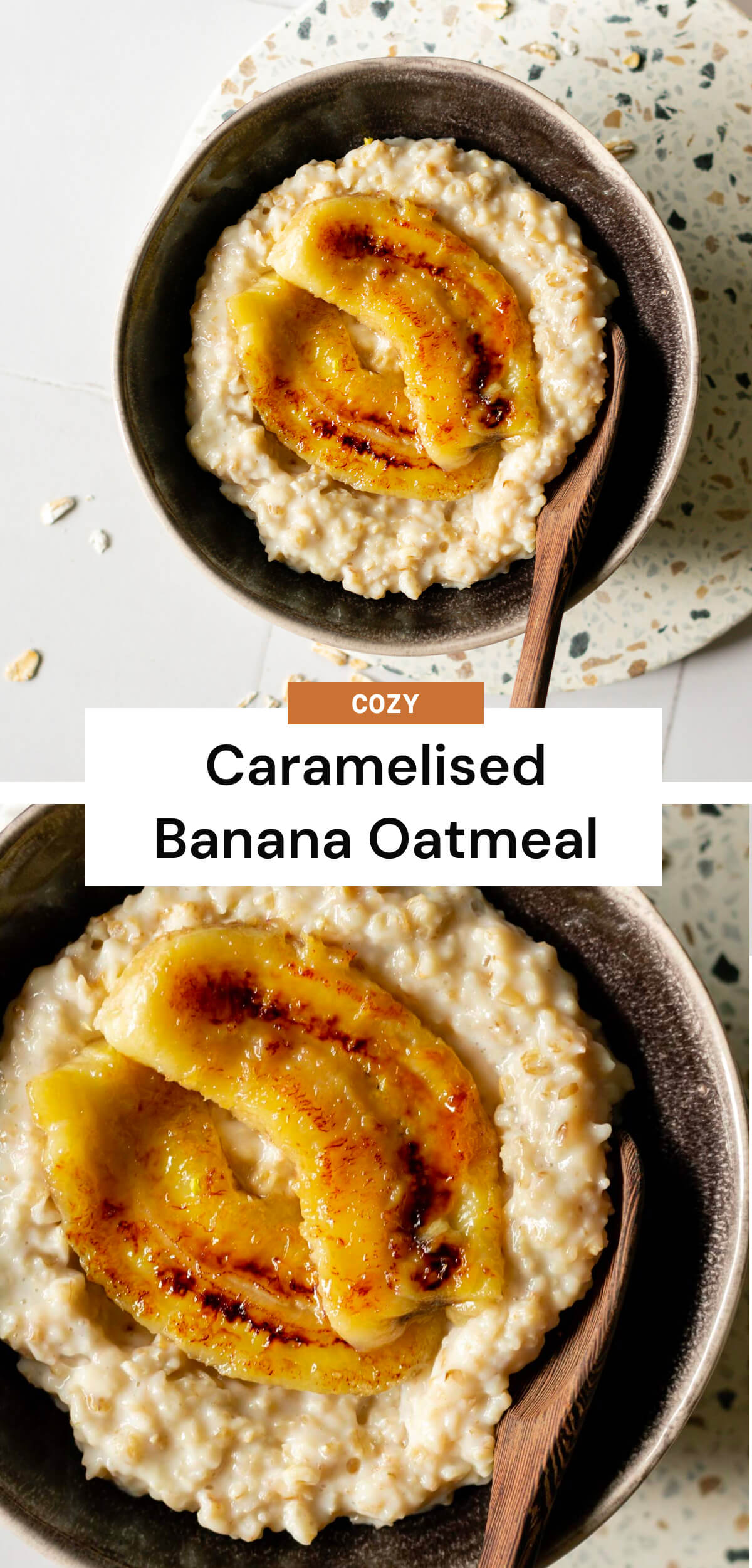 - Pour the oatmeal into your favourite bowl and top with the caramelised banana and any other toppings of your choosing. Enjoy!