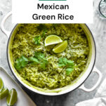 This vegan green rice makes the perfect accompaniment to a range of Mexican dishes. Serve with burritos, enchiladas, or even turn into tasty burrito bowls!