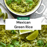- Taste the rice and season with extra salt if desired. Serve the Mexican green rice hot with lime wedges and fresh coriander. Enjoy!