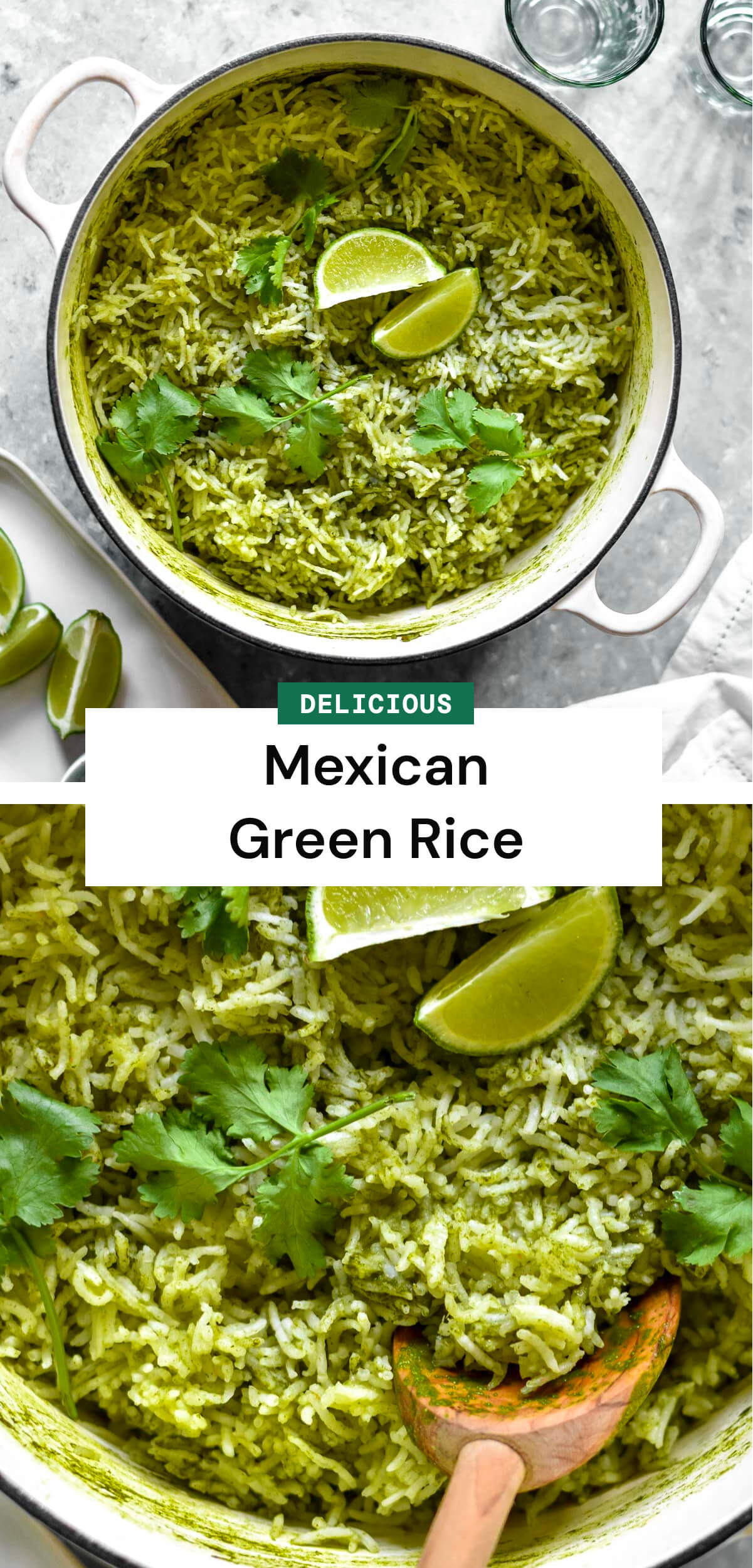 This vegan green rice makes the perfect accompaniment to a range of Mexican dishes. Serve with burritos, enchiladas, or even turn into tasty burrito bowls!