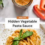 If you’ve got some picky eaters in the family, this hidden vegetable pasta sauce is the perfect thing to make. It tastes like tomato sauce but has the added health benefits from some sneaky blended vegetables!