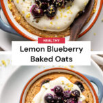 Once baked and golden, I love serving this baked oatmeal recipe with dairy-free yoghurt, more blueberries, and fresh lemon zest!