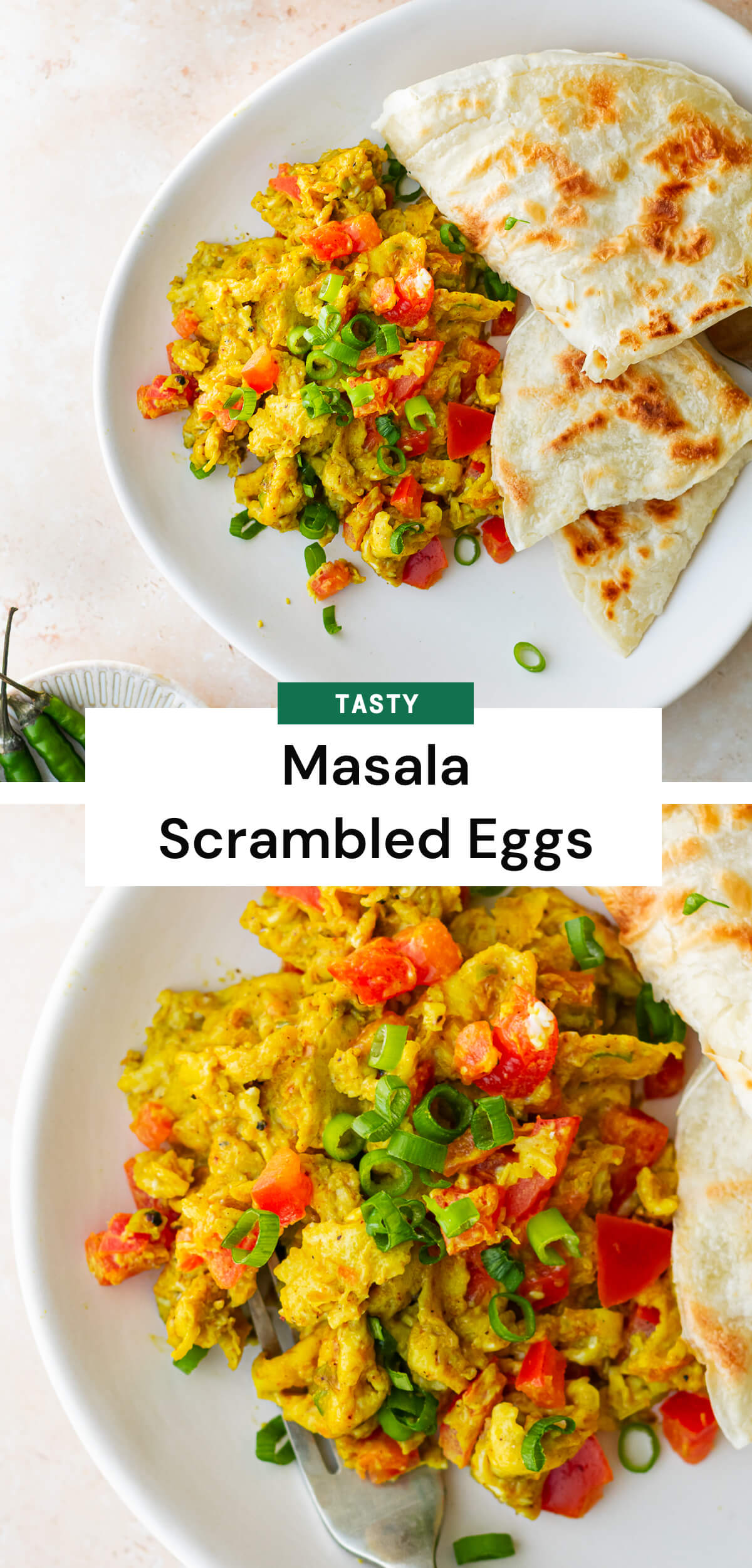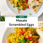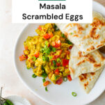 Masala scrambled eggs are best enjoyed alongside some hot buttery toast or flaky paratha (as pictured).