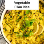 - Serve the pilau rice with lemon wedges and fresh coriander. Enjoy!