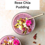 - Serve the chia pudding with toppings of choice. I like Greek yogurt, chopped pistachios and rose petals!
